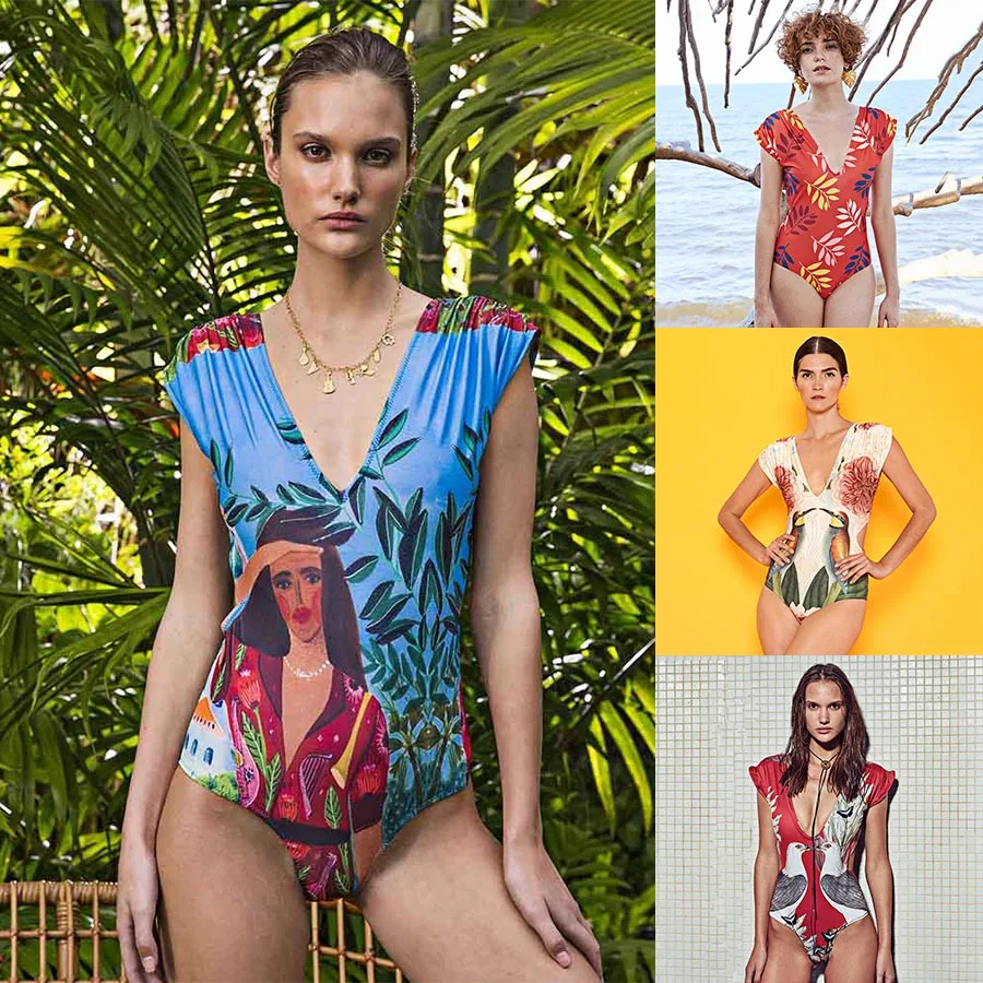 2020 купальник женский цельный купальник женский цветочный купальный костюм с принтом птицы Mayo пляжная одежда купальник для женщин с v-образн...