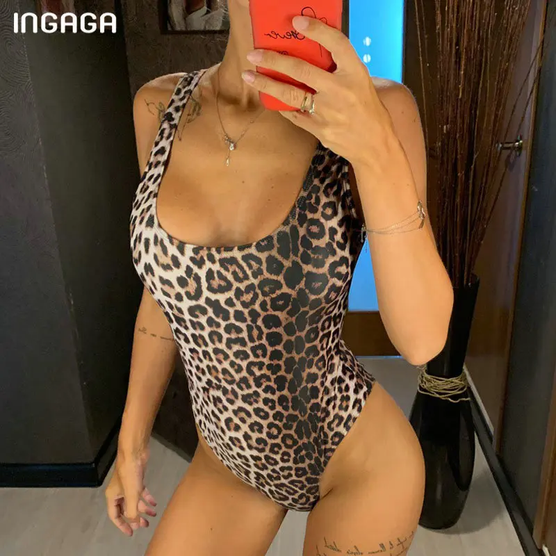Слитный купальник с леопардовым принтом INGAGA, купальник с рюшами, женский купальный костюм с узлом, женская сексуальная пляжная одежда, 2019 це...