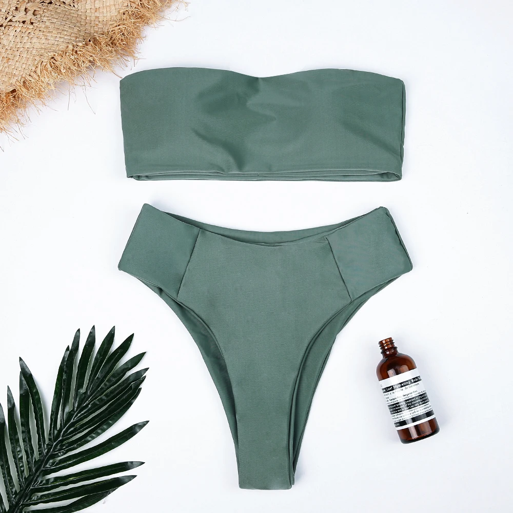 2018 Высокая талия купальник сексуальный комплект бикини Чистый цвет купальные костюмы комплект из двух предметов с открытыми плечами бикин...