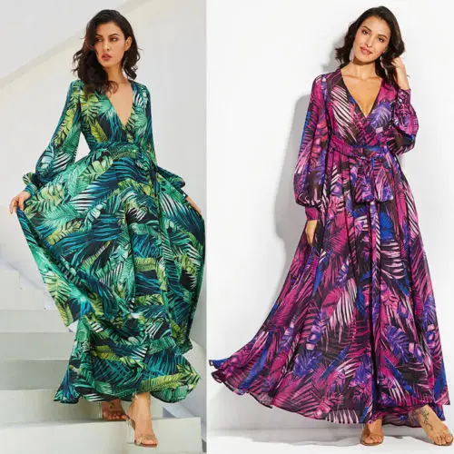 Женские цветочные с принтом, повседневная, свободная Длинная женская одежда макси Коктейльные вечерние летние пляжные сарафаны