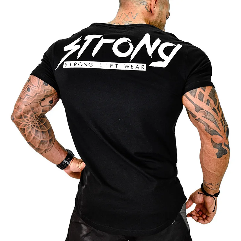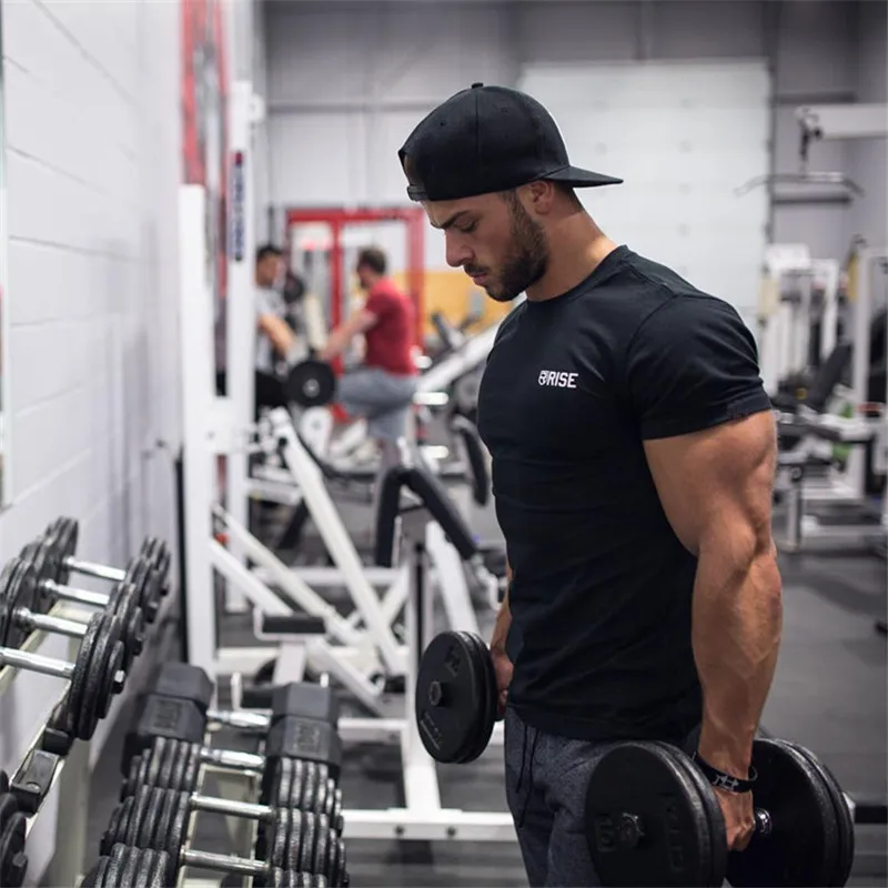 2019 Мужская футболка для спортзала, фитнеса, бодибилдинга, бега, хлопковые рубашки с коротким рукавом для тренировок, мужские спортивные фут...