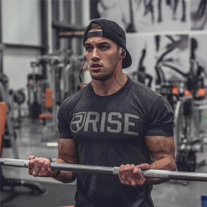 2019 мужские летние спортивные футболки для бега, тренировок, фитнеса, бодибилдинга, хлопковые футболки, спортивные брендовые короткие футбо...