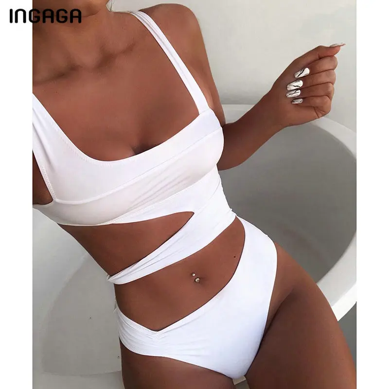 INGAGA купальник с вырезом сплошной сексуальный женский купальник монокини с высоким вырезом пляжная одежда купальный костюм 2019 купальник бо...