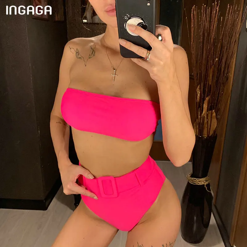 INGAGA высокая Талия бикини комплект без бретелек купальник женский купальник с тигровыми полосками сексуальный пояс бикини 2019 купальный кос...