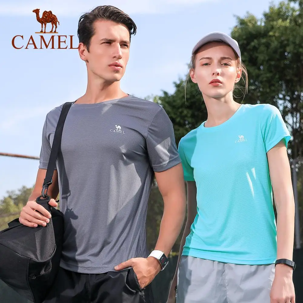 CAMEL/новый мужской и женский спортивный Быстросохнущий летний спортивный фитнес-зал с коротким рукавом