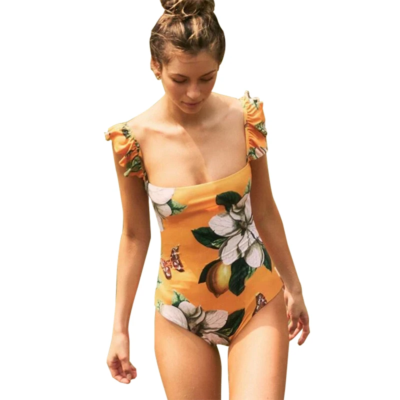 Женский слитный купальный костюм с открытыми плечами и цветочным принтом, женский пляжный купальный костюм 2020, женские купальные костюмы, м...