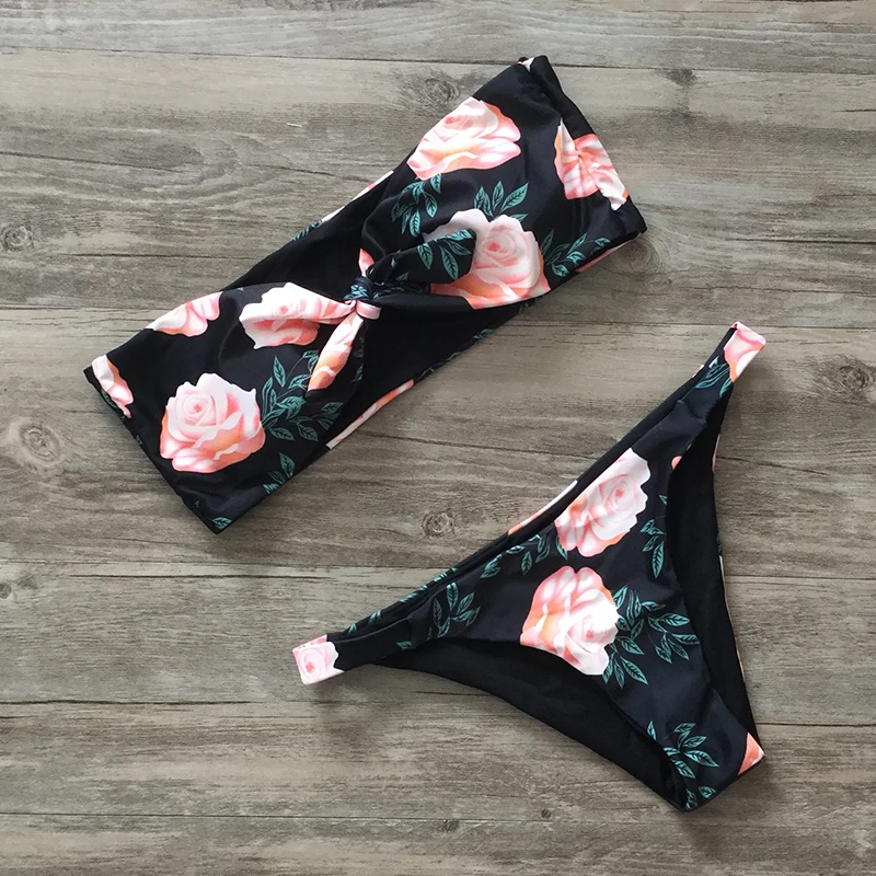 Бандо Бикини 2018 цветочный купальники печати Купальник бразильский Biquini сексуальные стринги бикини с бантом ванный комплект Maillot De Bain S-L
