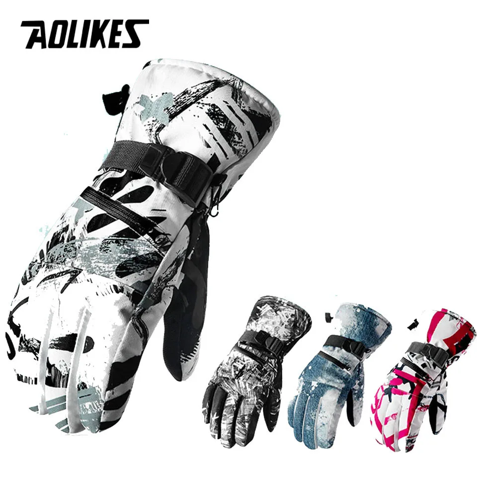 AOLIKES термальные лыжные перчатки для мужчин и женщин Зимние флисовые водонепроницаемые теплые зимние перчатки для сноуборда с 3 пальцами и с...