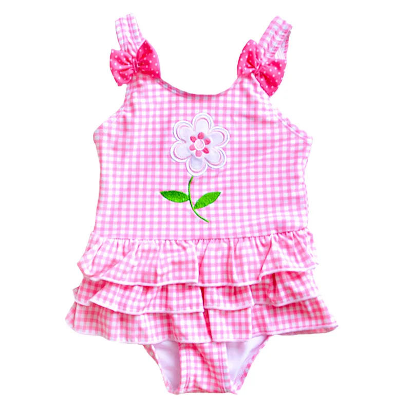 Розовая клетчатая одежда для купания для маленьких девочек, весенний купальный костюм для детей ясельного возраста, детский пляжный купаль...