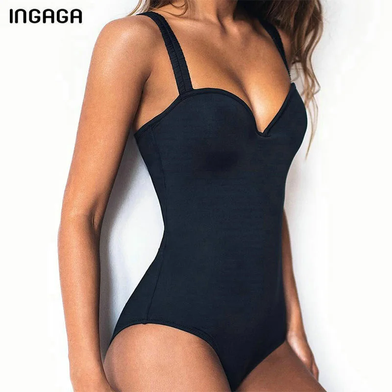 INGAGA пикантные одна деталь Купальник Push Up Однотонный женский купальник Летний купальник пляжная одежда новый 2019 купальники для женщин