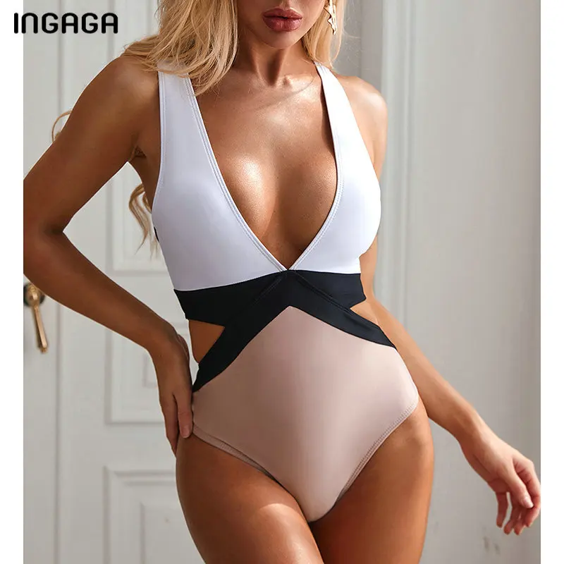 Слитный купальник INGAGA 2020, слитный купальник из кусков, женский сексуальный боди с открытой спиной, новый Монокини, купальник с высокой посадкой для женщин
