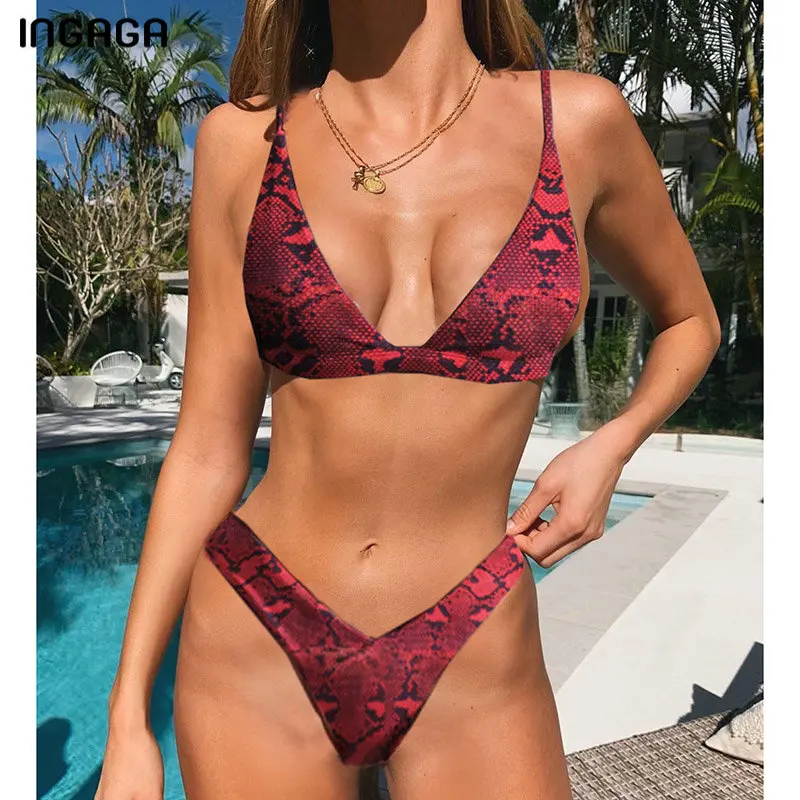 INGAGA Змеиный женский купальник с рисунком бикини 2019 Mujer купальник с высоким вырезом купальный костюм с пуш-ап женский сексуальный ремешок дл...