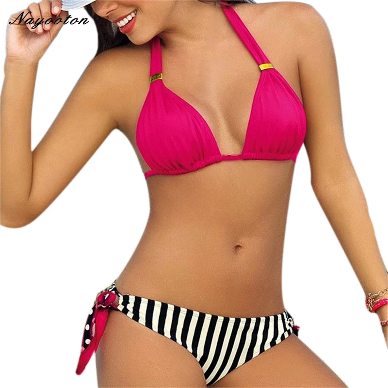 Бикини 2019 для женщин комплект ванный Push Up Двусторонняя одежда купальник круговой Воротник Полосатый купальник спинки пляжная