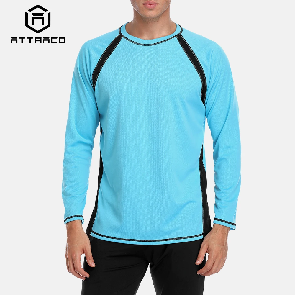 Attraco Для мужчин Long Sleeve Rashguard сухой подходят рубашки Для мужчин Дайвинг костюм для серфинга УФ-защиты Гидромайки Топ UPF 50 + Лоскутные пляжная о...
