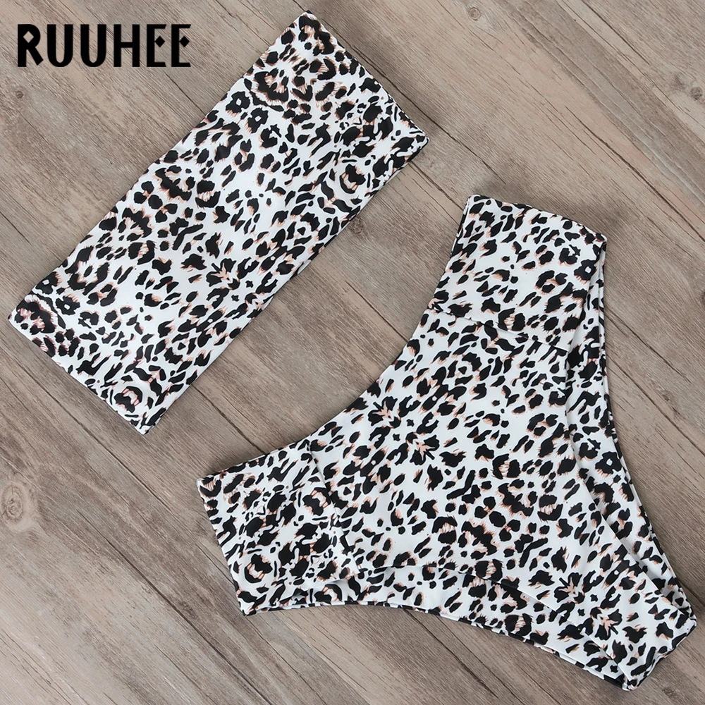 RUUHEE, бикини с высокой талией, бандо, 2020, женский топ-труба, купальник, пуш-ап, с принтом, сексуальный, из двух частей, купальник, купальник, пляж...