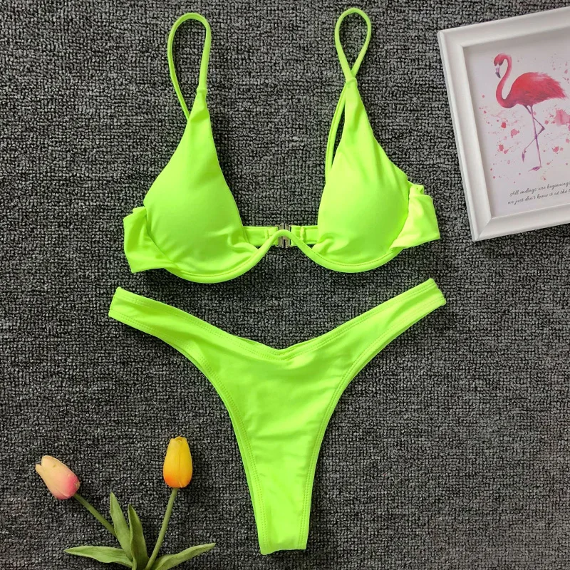 Сексуальный неоновый V-bar бикини на косточках 2019 женский купальный костюм из двух частей v-образный провод бикини набор купальный костюм для ...