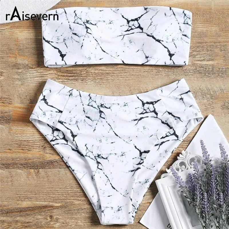 Raisvern, новинка, женский сексуальный бандажный бикини, набор, мраморный купальник, бикини с принтом, купальник, треугольный купальник, купальн...