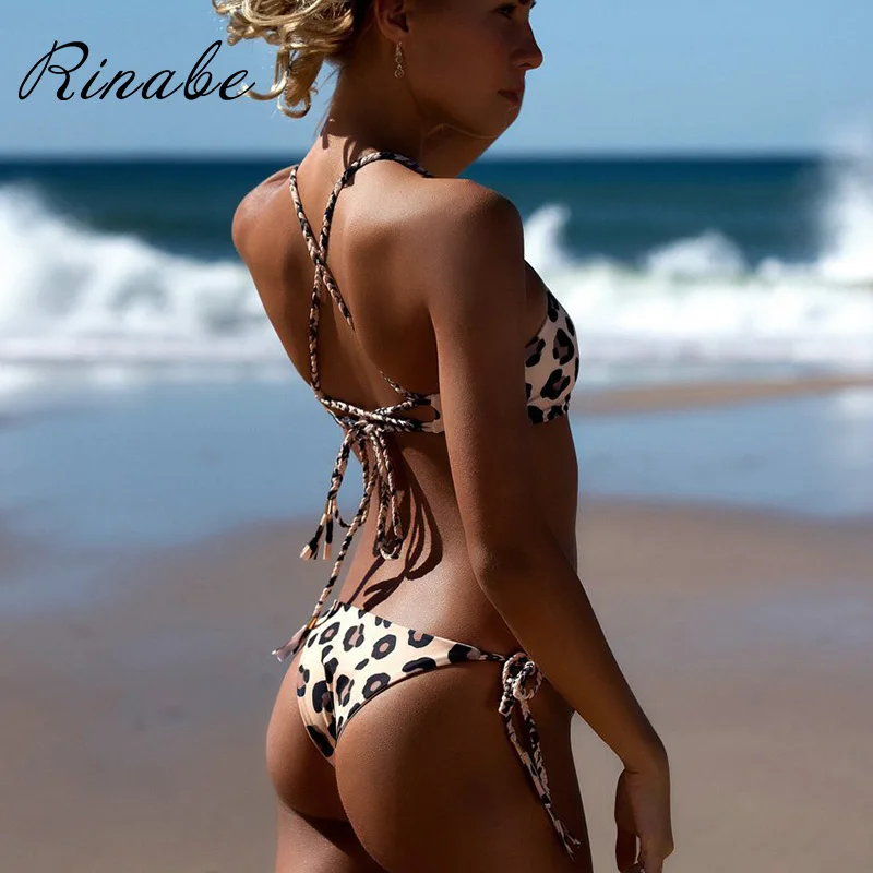 Rinabe пикантные леопардовый бикини выдалбливают перевязочный купальник Женские стринги строка бикини комплект бикини ванный комплект Для ж...