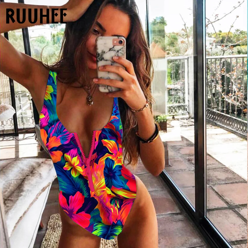 RUUHEE 2020, сдельный купальник, новинка, сексуальный, на молнии, женский купальник, пуш-ап, монокини, боди, купальник с принтом, купальник, летний, пляжный