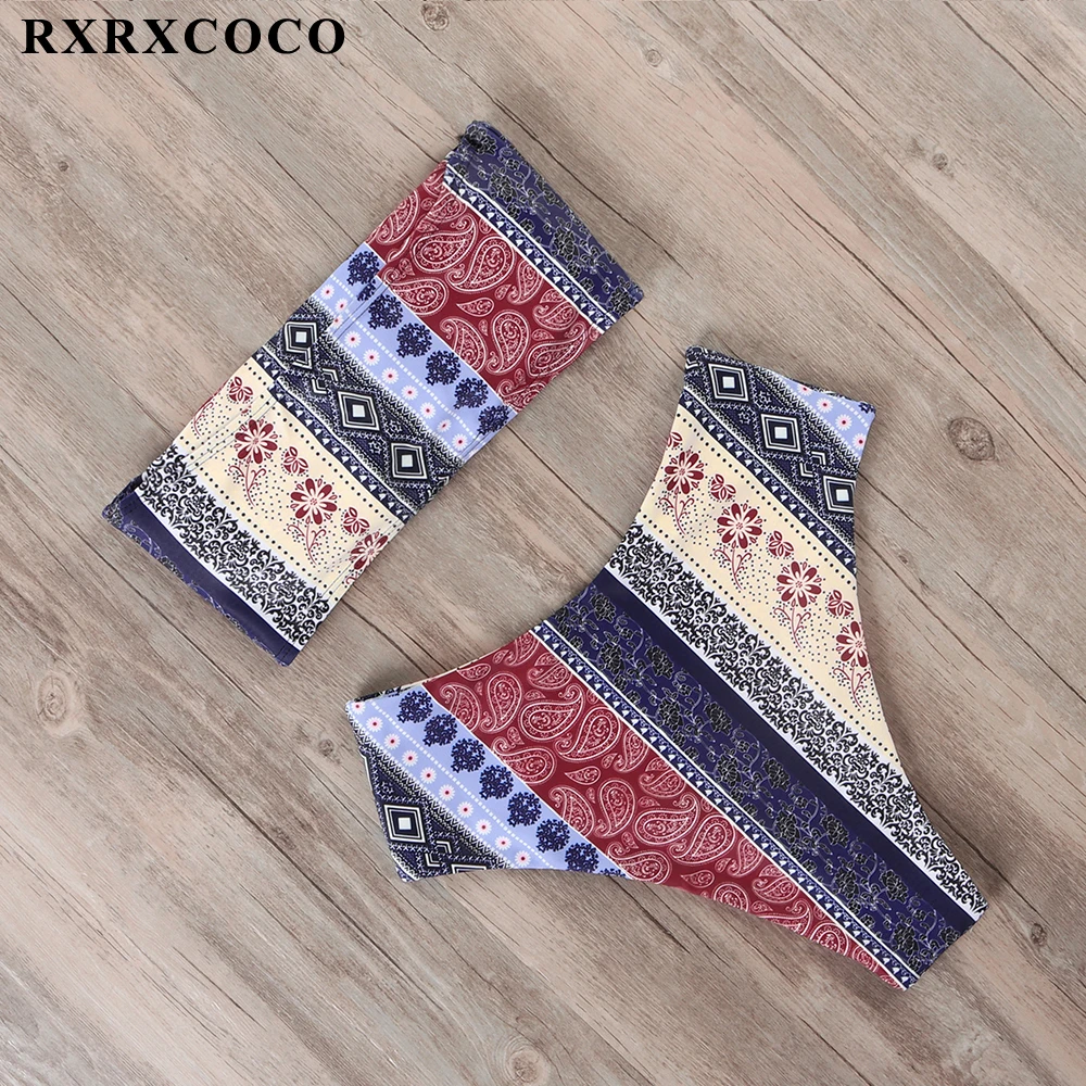 RXRXCOCO 2020, комплект бикини с высокой талией, сексуальный купальник бандо, женский купальник с принтом, летний купальный костюм, бразильские би...