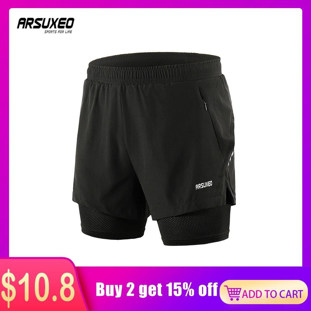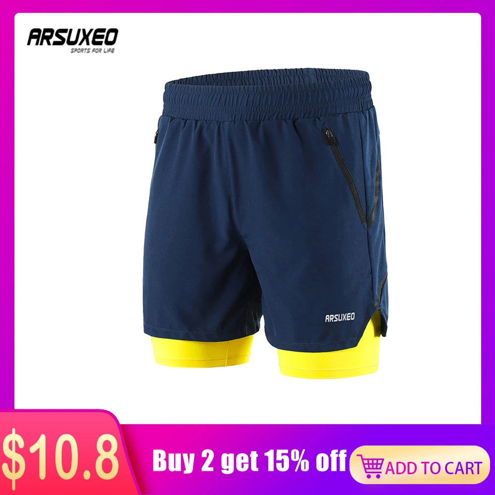 ARSUXEO 2019 мужские шорты для бега 2 в 1 спортивные шорты для занятий спортом с вкладышем быстросохнущие B202