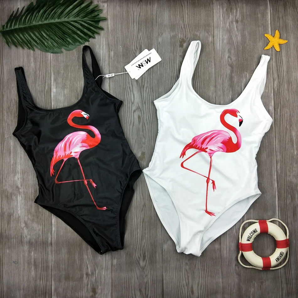 M & M 2018 Новый Цельный купальник Фламинго Печатный женский летний белый черный с открытой спиной купальник сексуальный купальный пляжный кос...