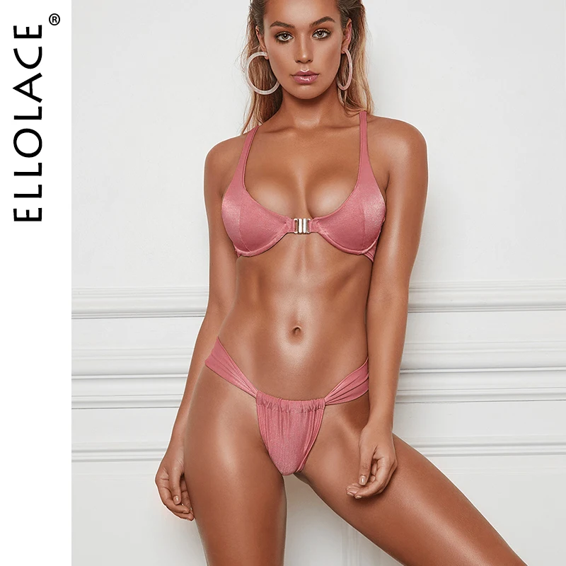 Ellolace, пуш-ап, сексуальное бикини, 2019, купальник Mujer, с высокой посадкой, женский купальник, Женский Одноцветный купальник, бикини, монокини, пл...