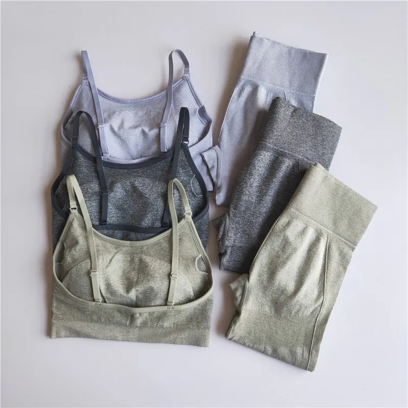 Обтягивающие леггинсы и бюстгальтер с высокой талией, комплект из 2 предметов, спортивная одежда для тренировок, Женский бесшовный комплект...