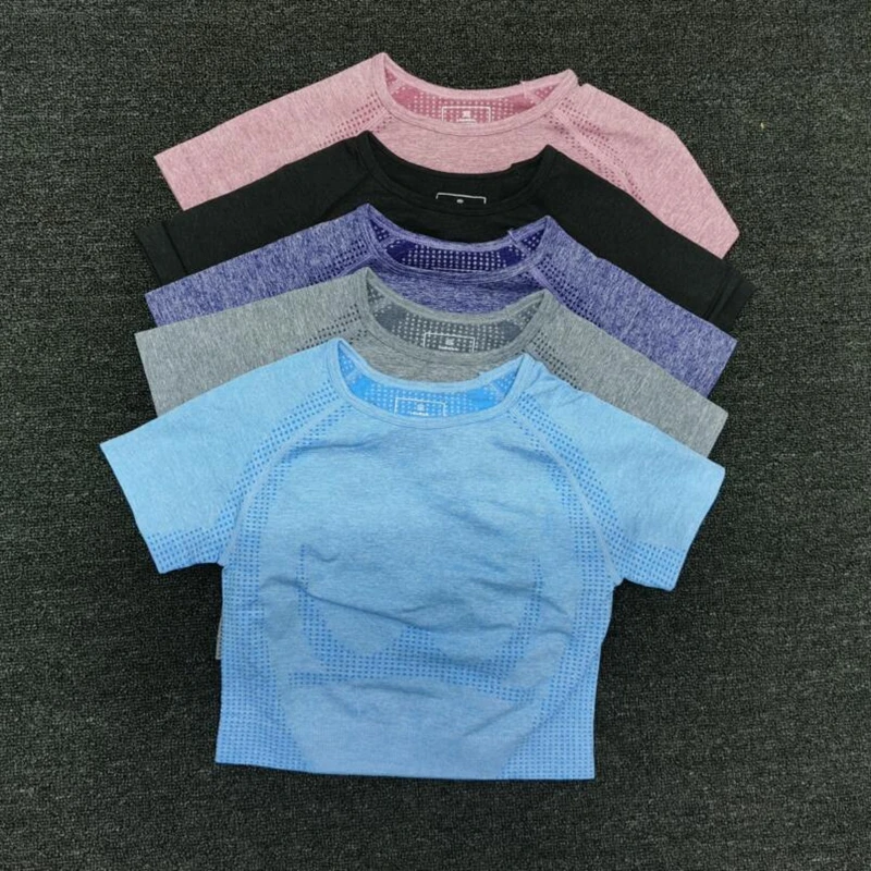 Женская Спортивная одежда для женщин тренажерный зал Йога Топ Футболка женские топы спортивные рубашки Фитнес Бесшовные Джерси женские то...