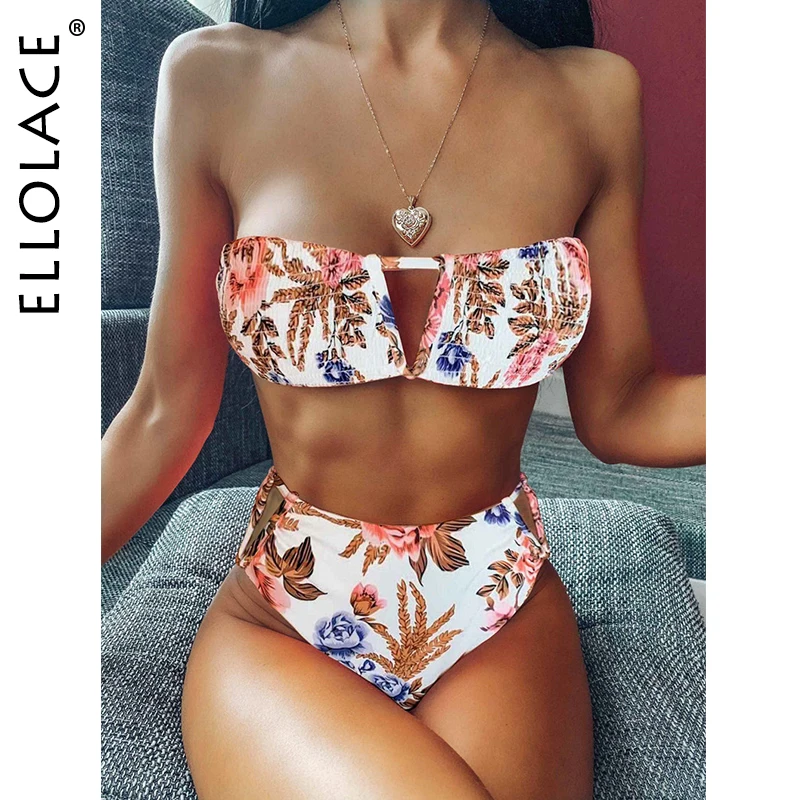 Elolace, сексуальный цветочный купальник, бандо, купальник, женское бикини, без бретелек, купальный костюм, пляжная одежда, открытая Монокини, п...