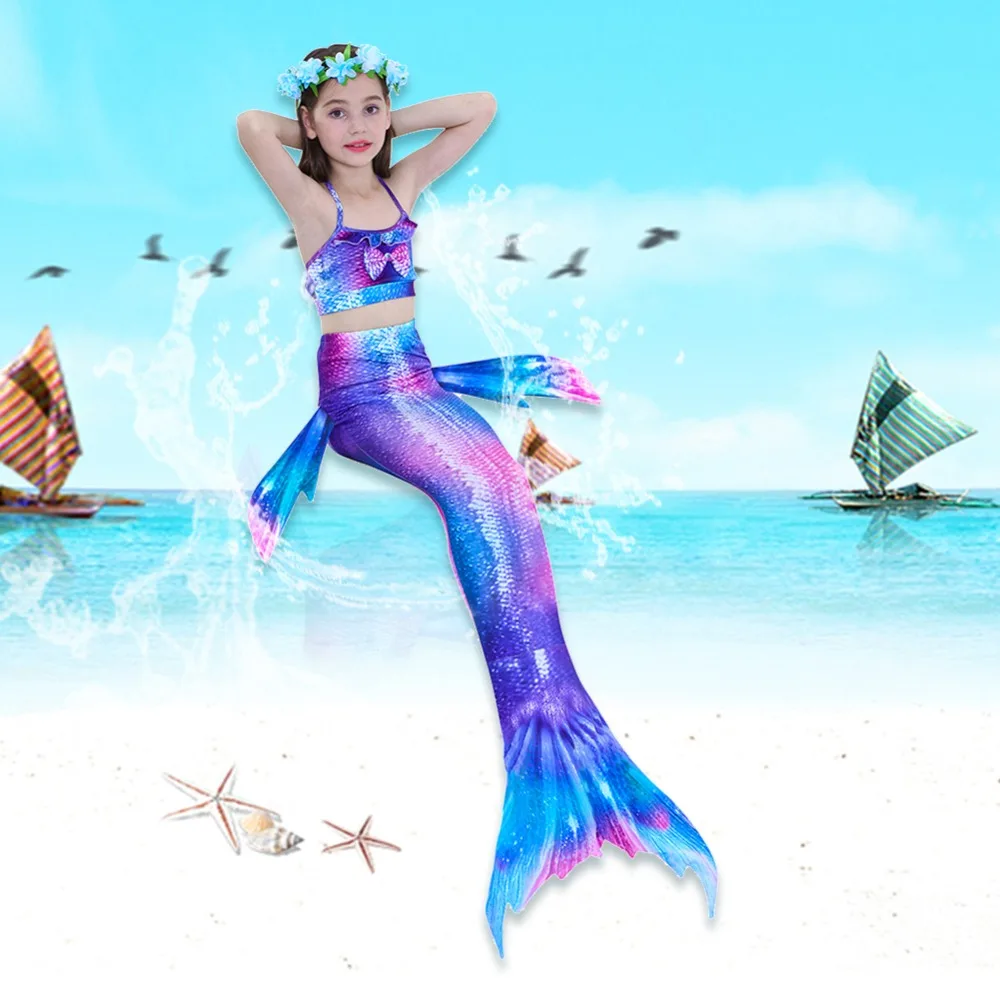 3 шт./компл. горячий Детский купальник-бикини для девочек, набор с хвостом русалки с ребром купальник бикини ванный комплект, платье для дево...