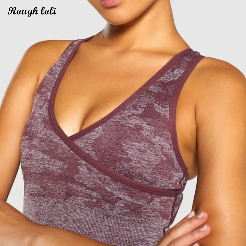 Камуфляж бесшовные спортивные бюстгальтер Прочный push up Спортивный бюстгальтер active wear для женщин Фитнес Топ тренировки бюстгальтер для тре...