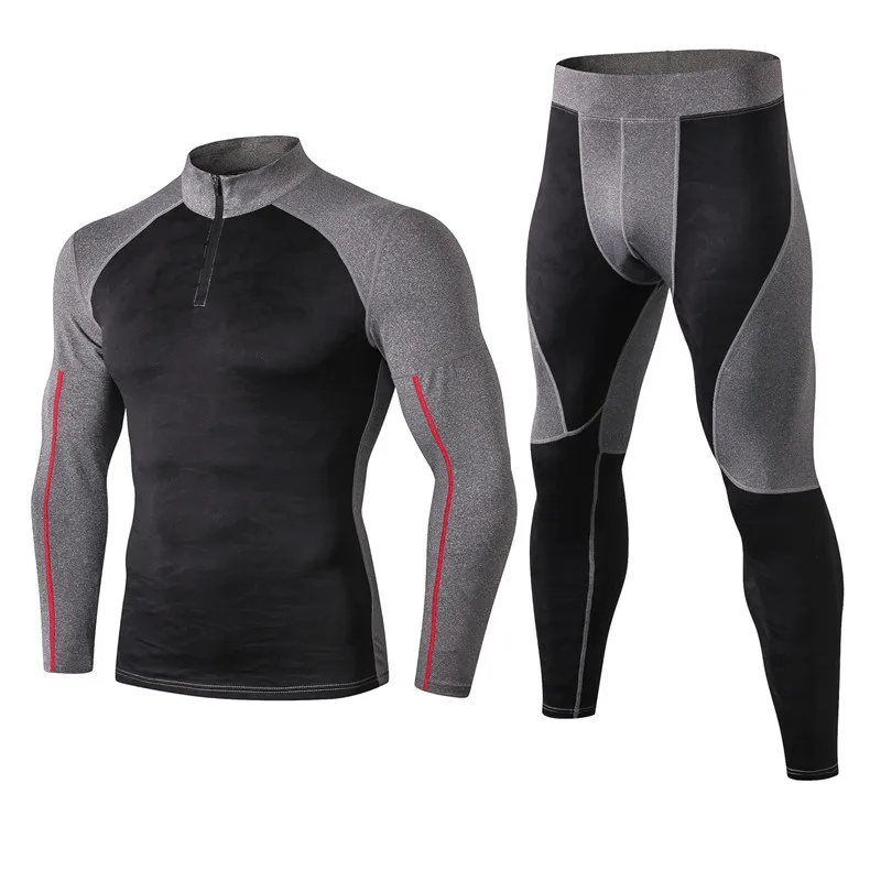 Новые мужские уличные тренировочные комплекты для фитнеса, зимние спортивные костюмы для бега, длинные штаны для бега, эластичные Компресс...