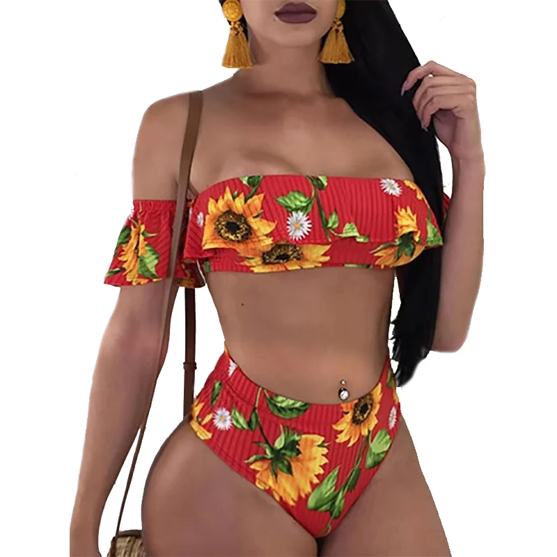 2019 одежда для купания в африканском стиле для женщин высокая Талия Бикини рюшами купальник Push Up комплект ванный летняя пляжная одежда Biquini ж...