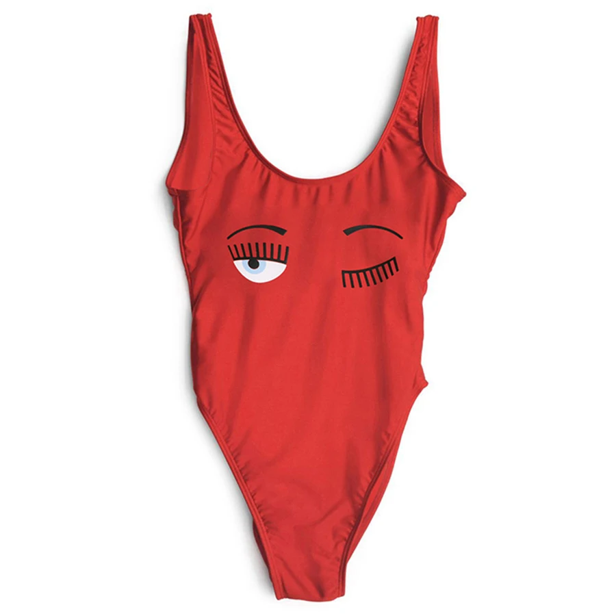 Цельный купальник с принтом глаз с высоким вырезом купальники женский купальник с овальным вырезом Цельный купальник ресницы эластичный б...