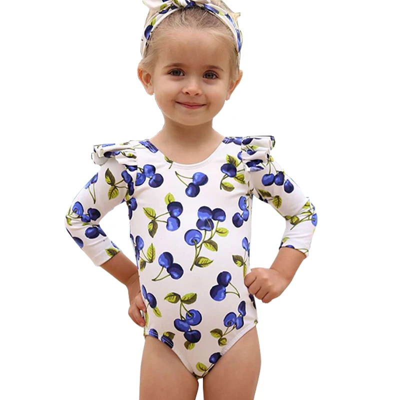 С длинными рукавами; детский купальный костюм Одна деталь Сыпь гвардии для маленьких девочек милые, с воздушными рукавами, ванный комплект ...