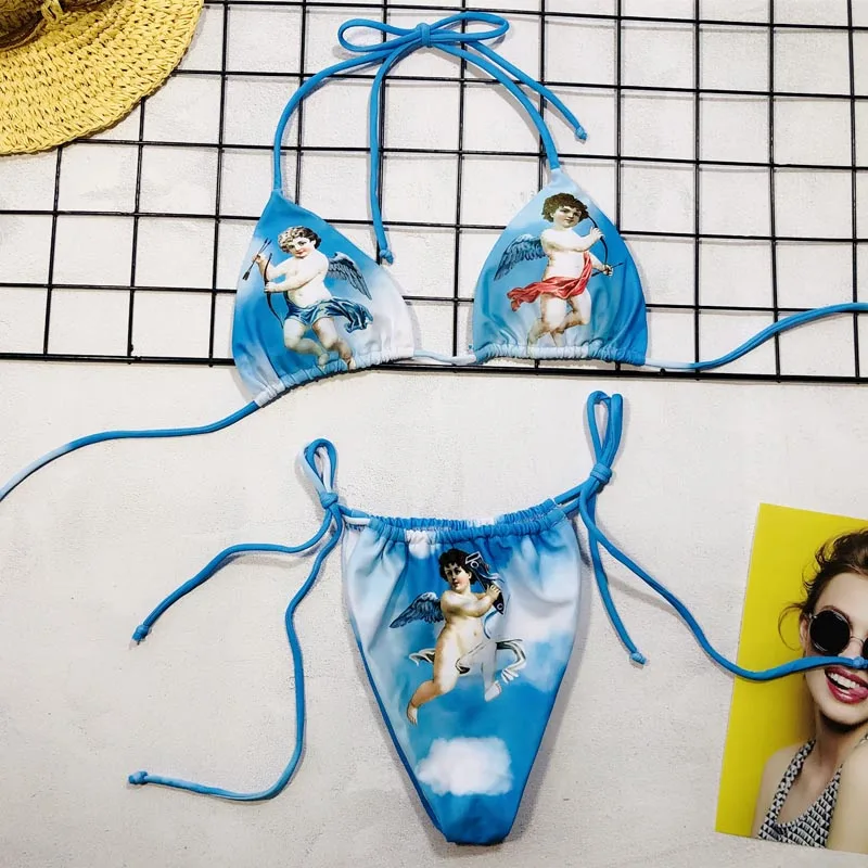 Сексуальный бикини с принтом ангела 2019 женский микро купальник женский стринги купальная одежда Холтер купальный костюм 5210