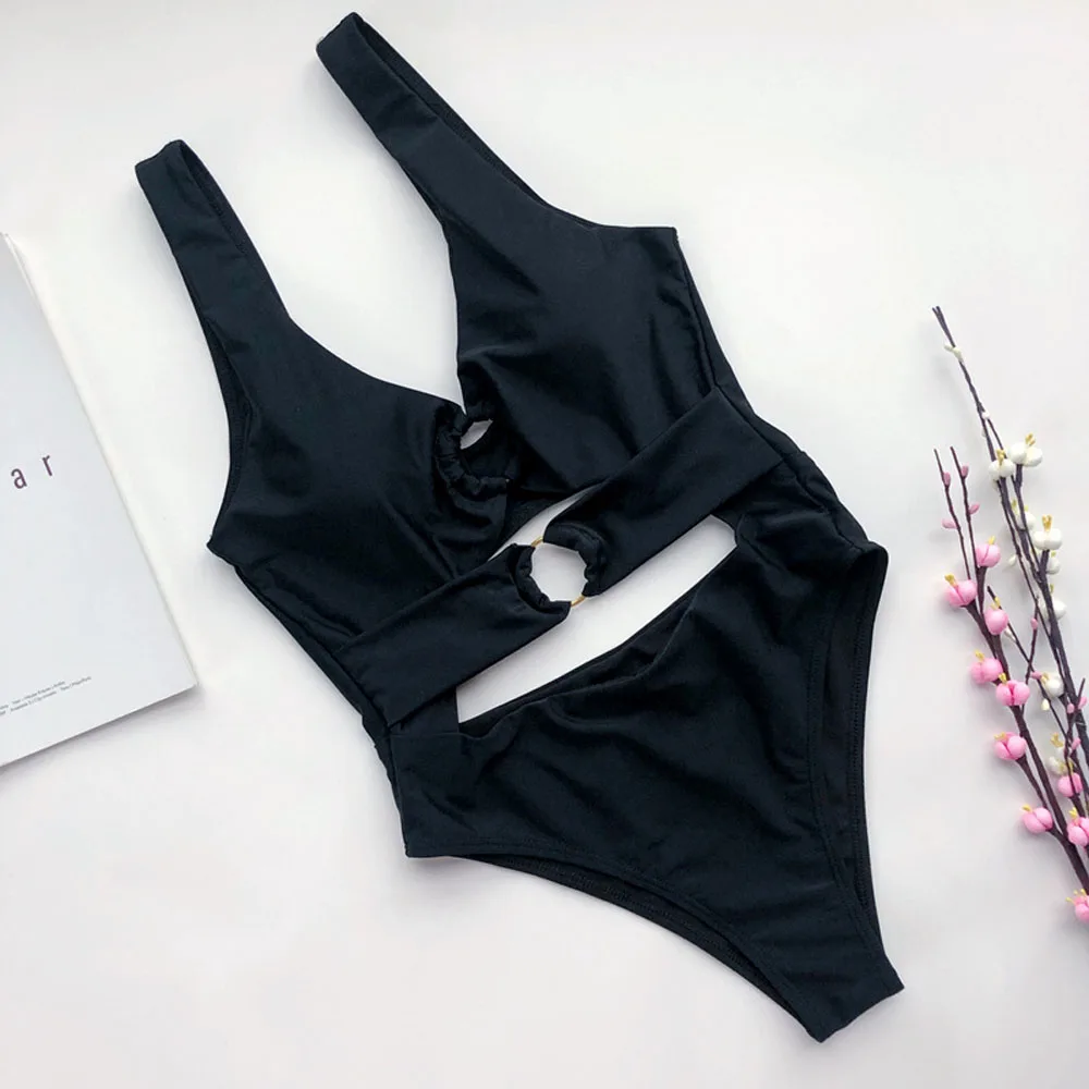 4 цвета купальник, украшенный цепочками цельный купальный костюм бикини 2020 Mujer выдалбливают High cut купальники Для женщин пуш-ап купальник Мон...