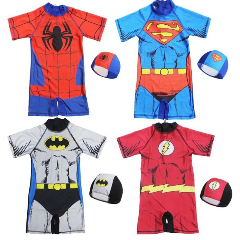 Мальчик цельный костюмы Человек-паук Капитан Америка Ultraman вспышка Бэтмен из мультфильма "Железный человек" Детские купальники детские купа...