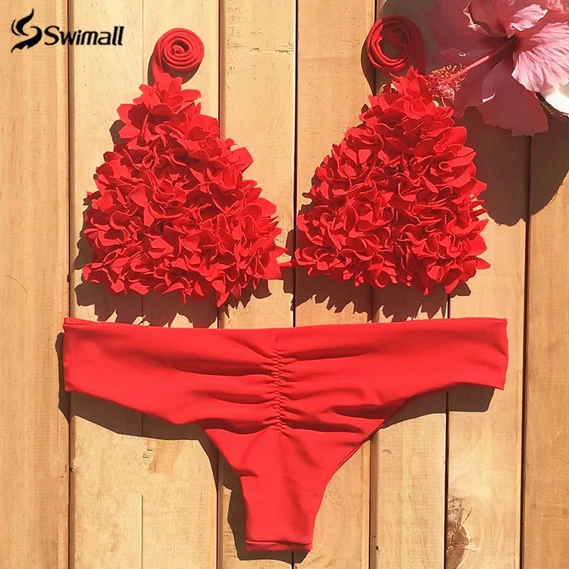 Бикини 2019 Mujer 3D цветок Купальник женский купальник, бретельки на шее бразильский комплект бикини принт ванный Комплект Одежда заплыва костю...