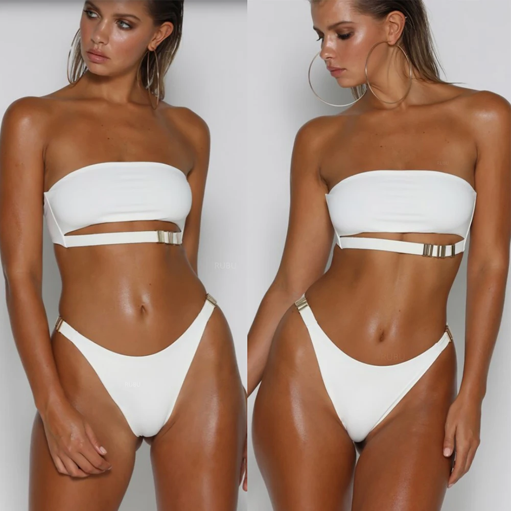 Пикантные металлической пряжкой бикини 2019 High cut купальник Для женщин комплект бикини купальники бикини женский бразильские Плавки бикини п...