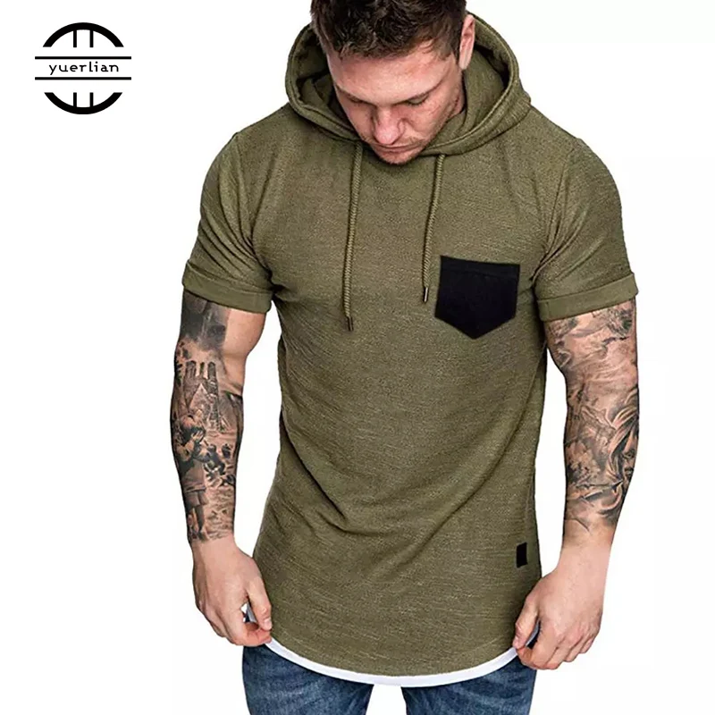 2019 новый дизайн мужская с капюшоном Тонкая Однотонная футболка с короткими рукавами Спортивная одежда для спортзала Бег Рубашка