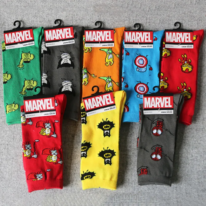 Новые герой комиксов Marvel общие носки мультфильм Железный человек Капитан Америка колено-высокие теплые сшитые узор Нескользящие Повседнев...