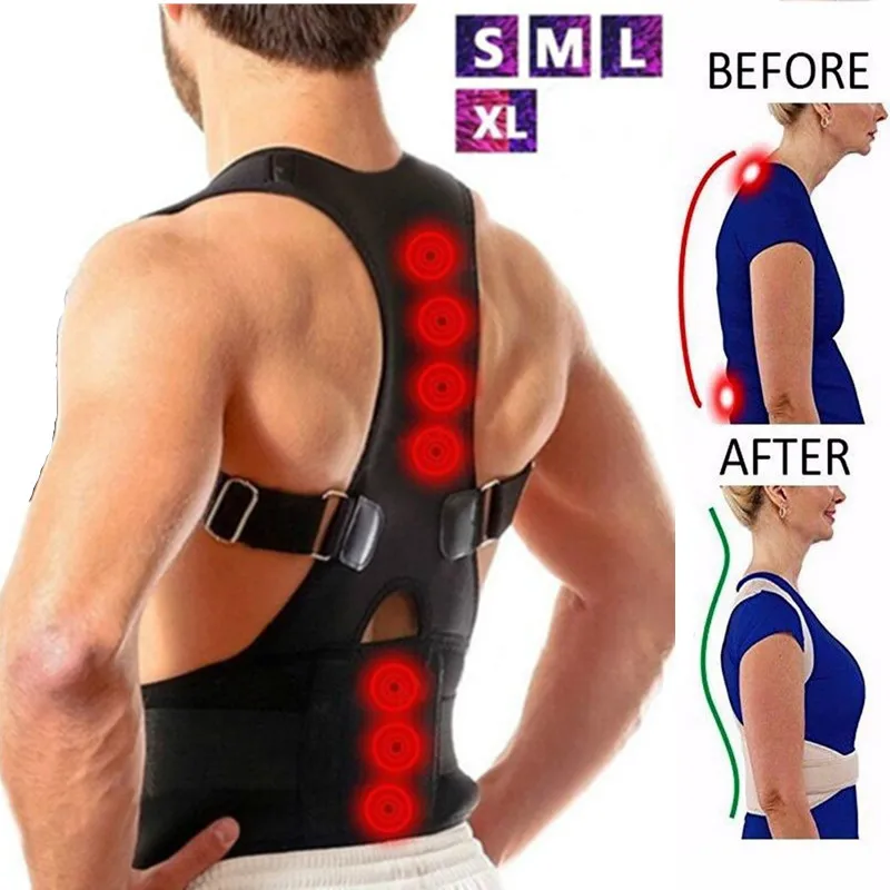 Магнитный Корректор осанки неопрена назад удерживающий корсет выпрямитель осанки пояс назад корсет для поддержки осанки для Для мужчин Дл...