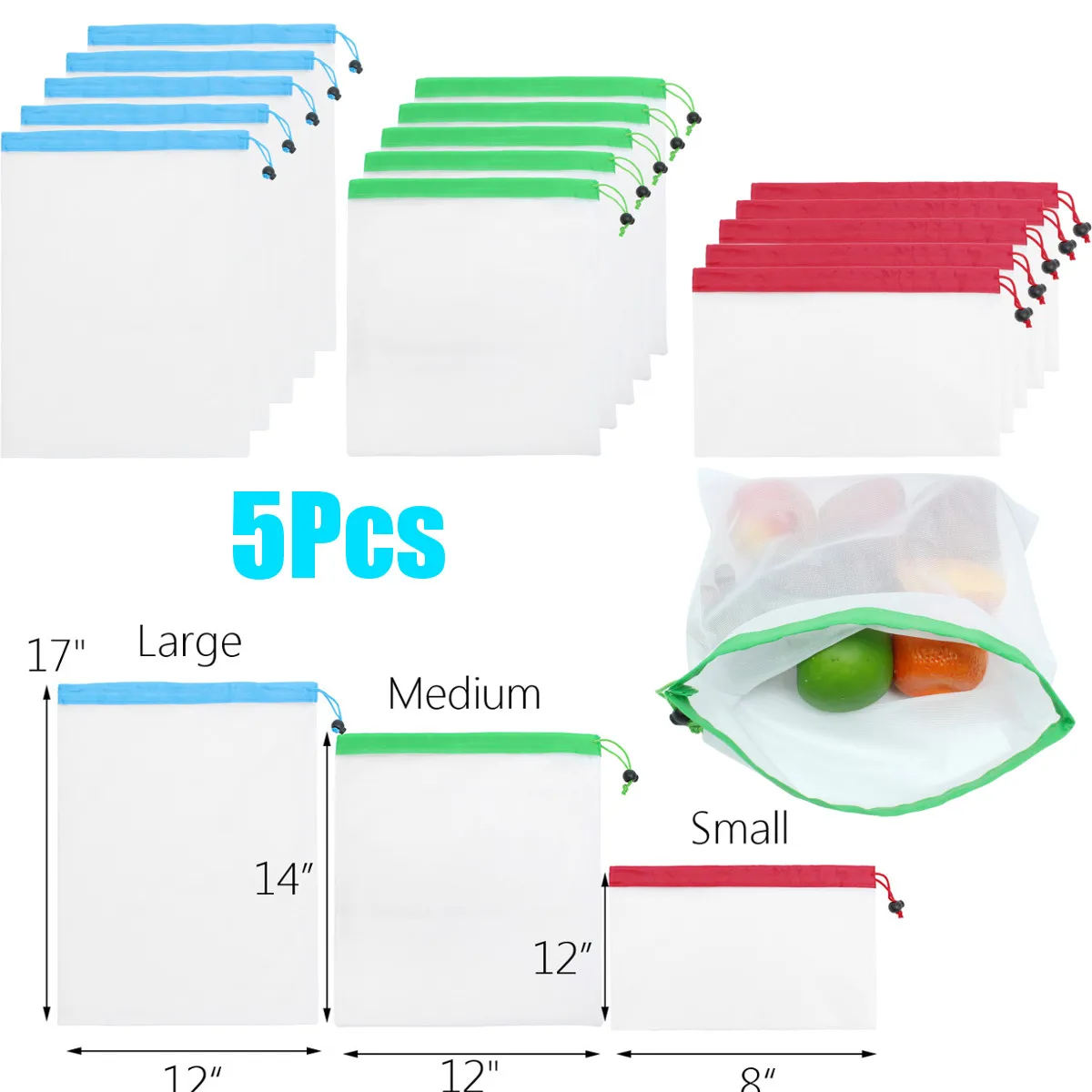 5 штук Многофункциональный Многоразовые шоппер полиэстер сумки, корзины Бакалея сумки шнурок сетка сумка для хранения Еда