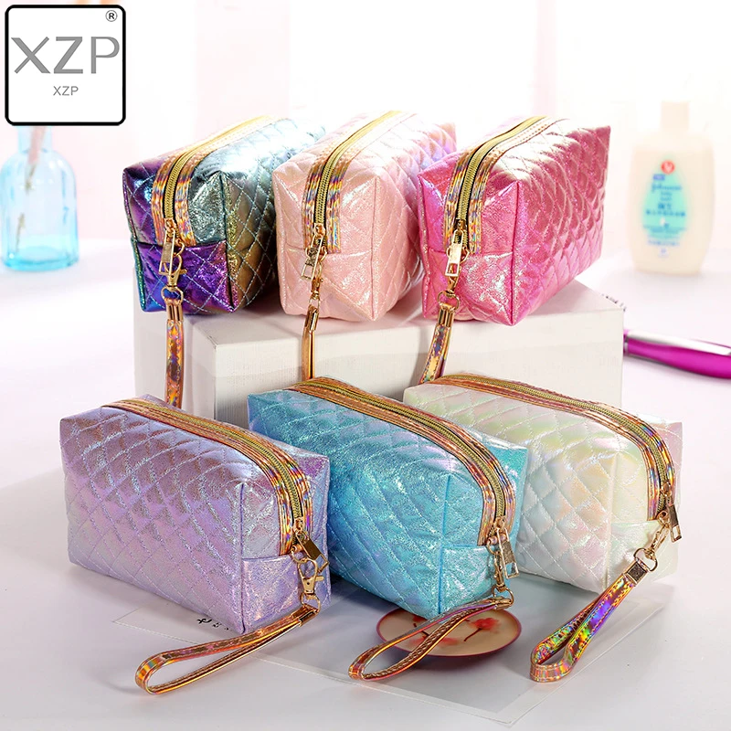 XZP новая PU портативная женская косметичка для путешествий, персональная Лазерная клетчатая сумка для хранения, Большая вместительная косме...