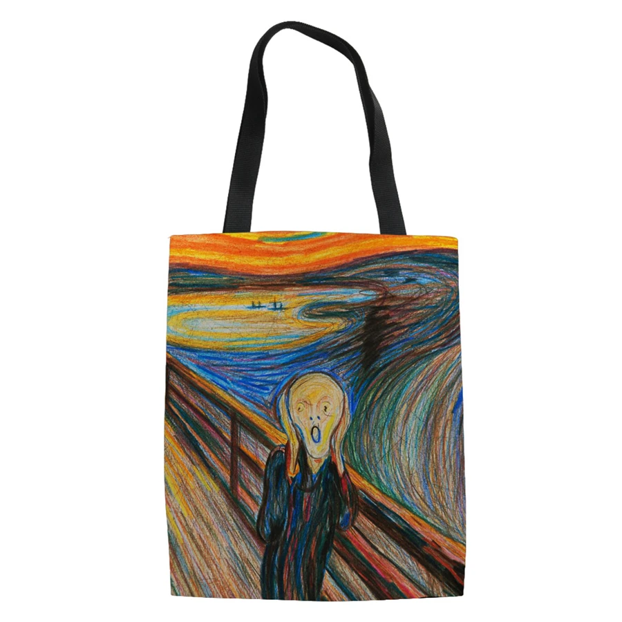 Известный Ван живопись для женщин холст хозяйственные сумки повседневное экологичная, вместительная дружественных плеча универсальный ме...