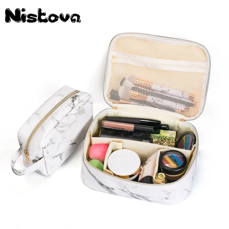 Мраморная портативная дорожная сумка-Органайзер из искусственной кожи, многофункциональная сумочка-косметичка для макияжа, косметичка с золотой молнией, косметичка для женщин