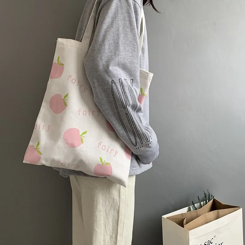 Женские повседневные холщовые сумки для покупок, художественная сумка через плечо с изображением яблока и феи, хлопковые сумки-тоут для дев...