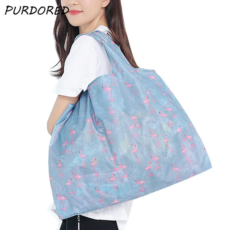 PURDORED 1 шт. Многоразовые Складная сумка для покупок для женщин Сумка Многоразовый тотализатор мешок Recycle водостойкие хранения сумки дропшипп...